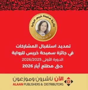 تواصل “الآن ناشرون وموزعون”، ومقرها العاصمة الأردنية عمان، استقبال الأعمال المرشحة لجائزة سميحة خريس للرواية حتى يوم 1 أيار 2026.